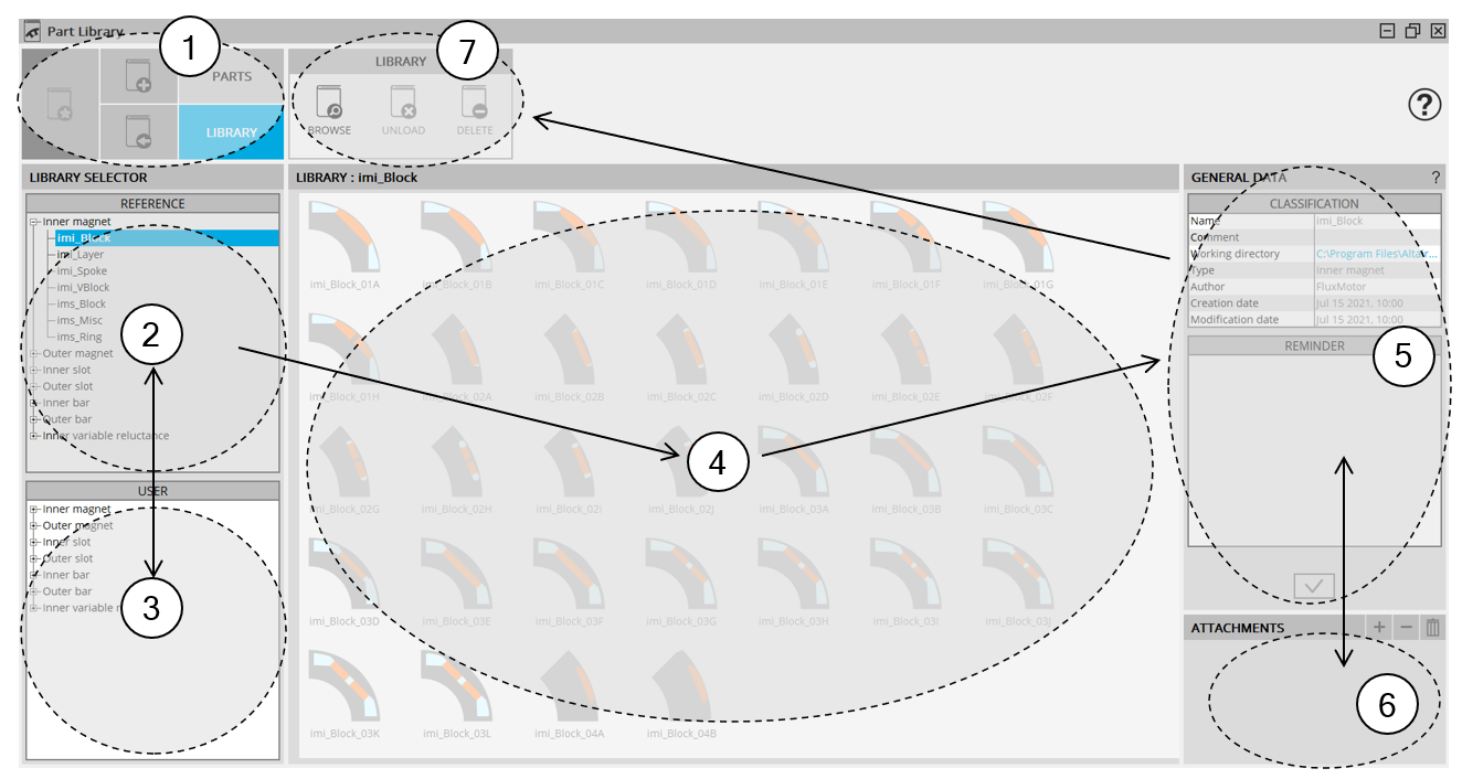 | Zone 4 | Visualization of all the parts (thumbnails) stored in the selected library. |