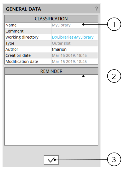 | 3 | Button to save the changes in the REMINDER and/or Author fields. |