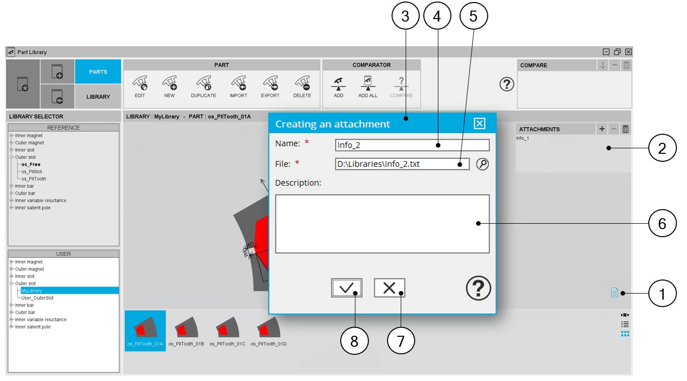 | 8 | Button to apply inputs, create the new attachment and close the dialog box. |