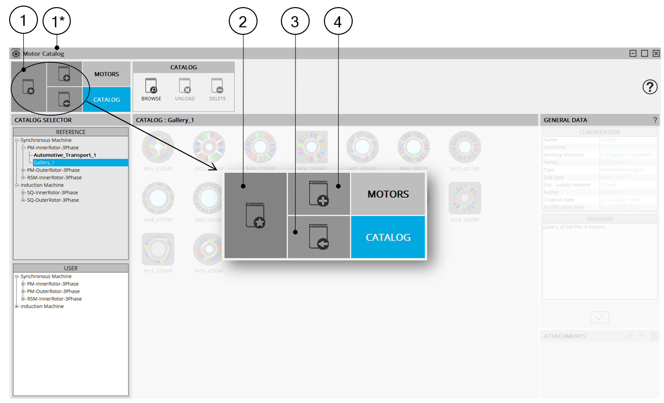 | Zone 4 | Visualization of all the motors (thumbnails) are stored in the selected catalog. |