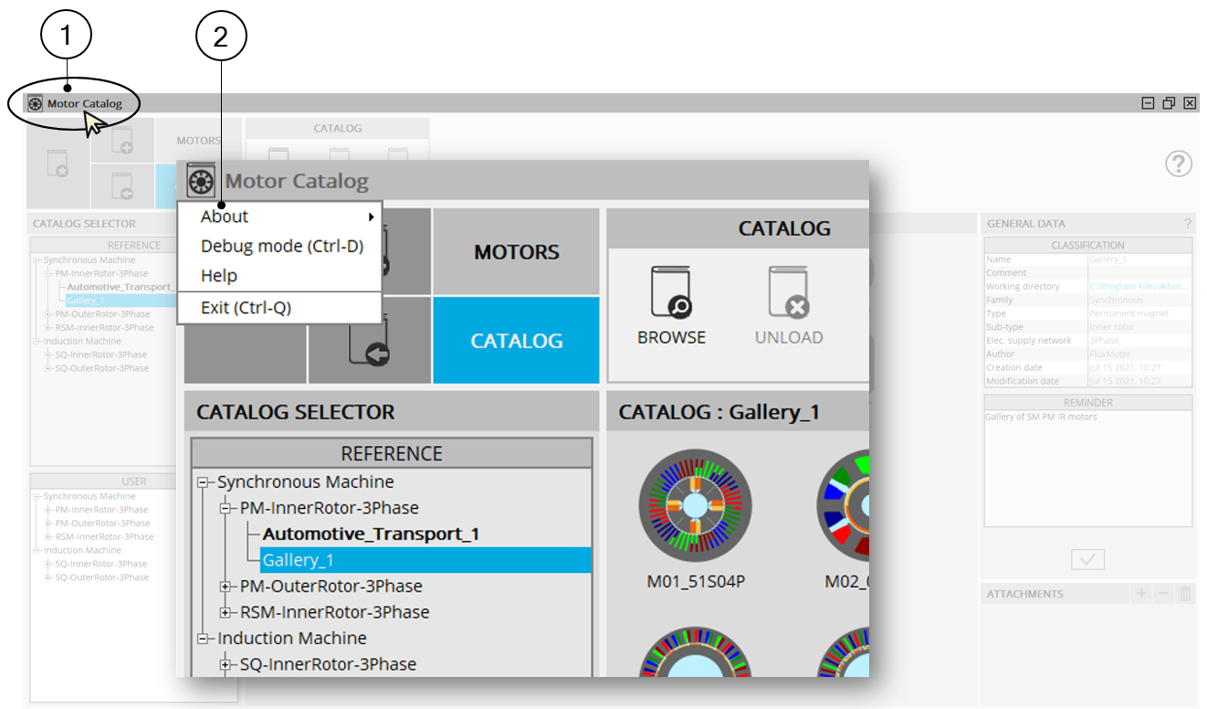 Selections of catalogs must be done in this field. Motors of these catalogs are read only. However, they can be copied and moved into user’s catalogs. |