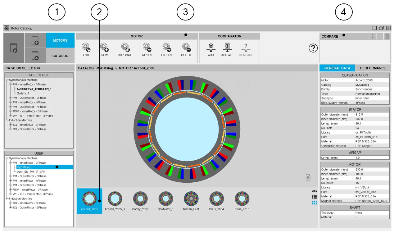 1 Selection of the catalog of the motors are displayed.