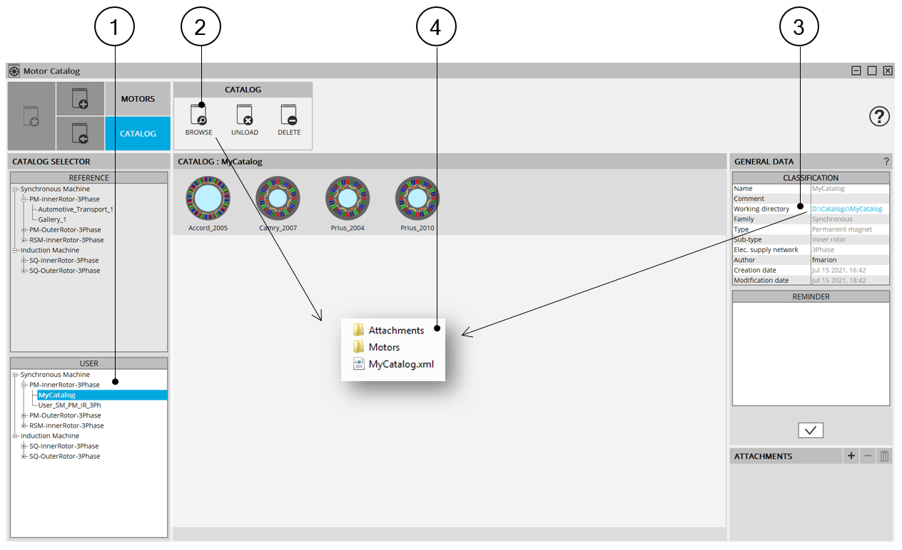| 4 | Content of the folder “MyCatalog”:Two folders “Attachments” and “Motors”