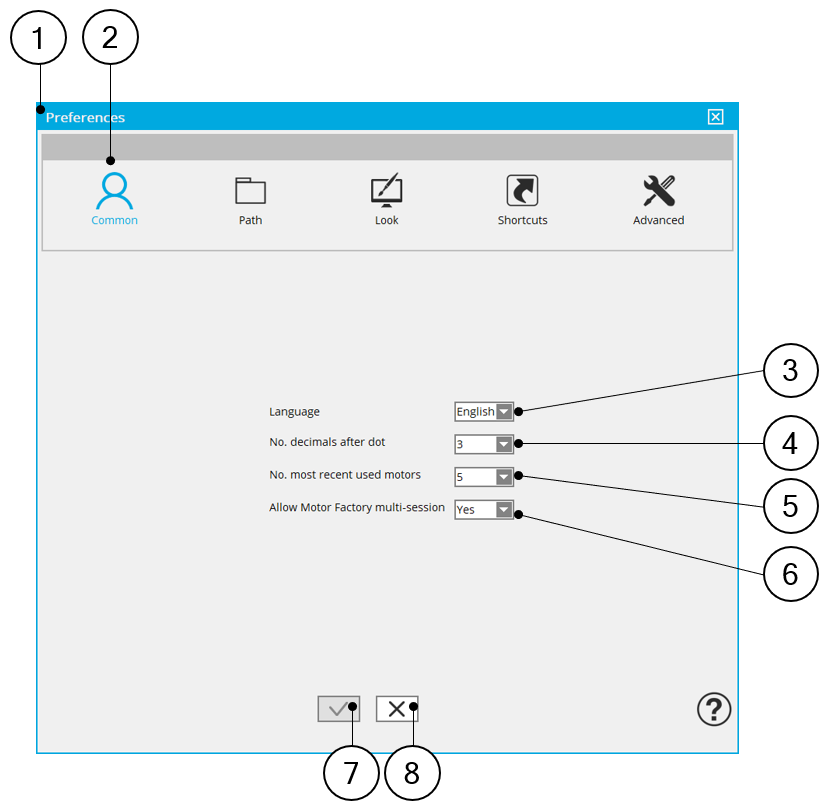 | 6 | When Yes is selected several Motor Factory sessions can be opened at the same time. Yes is set by default |