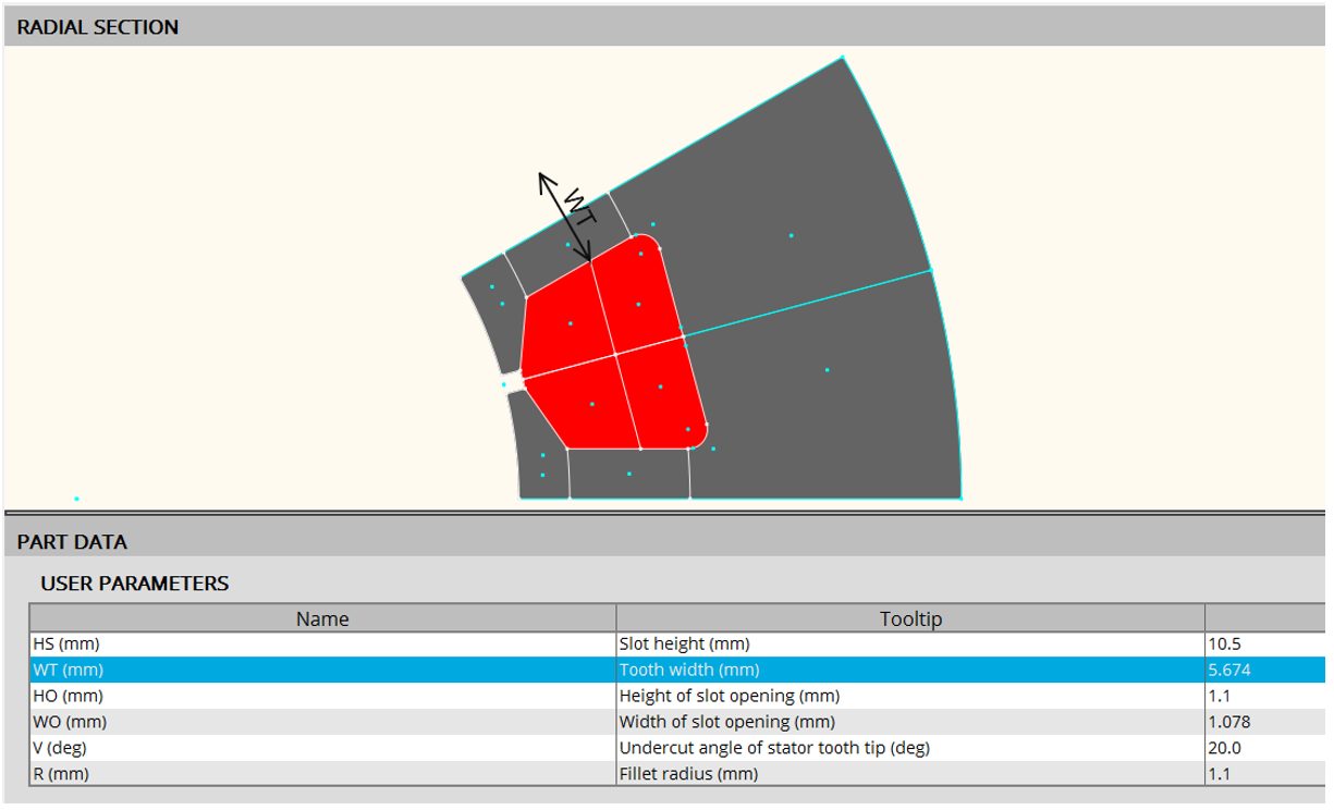 Clicking on user input parameters or output parameters makes the corresponding dimension appear on the drawing.