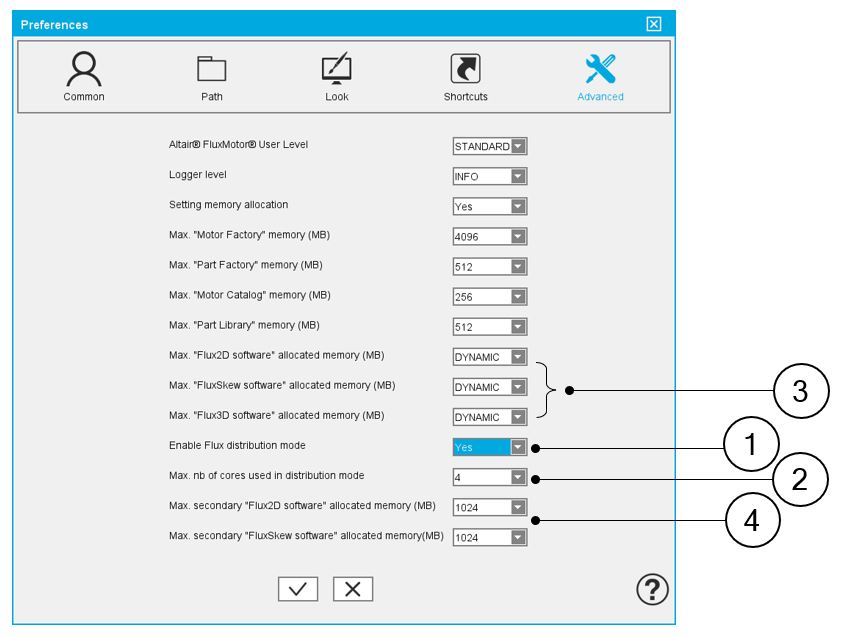 In FluxMotor, the Flux distribution mode (number of secondary Flux in parallel) must be set in the Preferences in the section Advanced. It’s just needed to set “Flux distribution mode” to “Yes” and to select the “Maximum number of cores” you want to use.