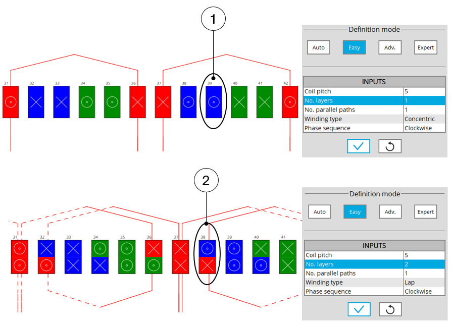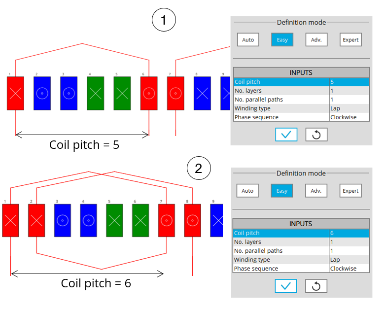 Coil pitch Coil pitch = number of slot pitch between coil input and coil output (Easy mode / Advanced mode).