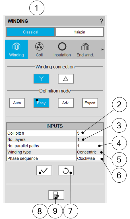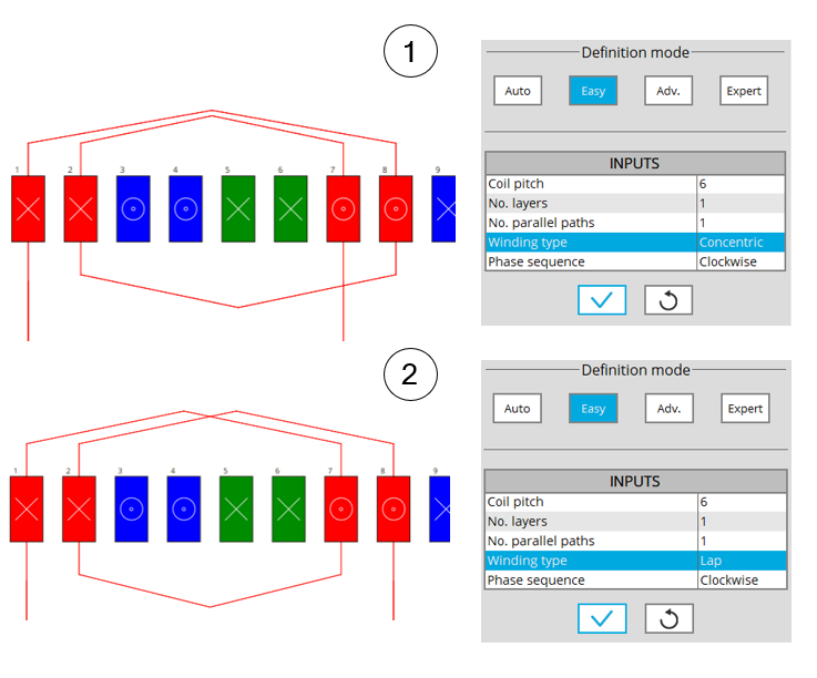 Winding type * Winding type - Lap or Concentric (Easy mode / Advanced mode).