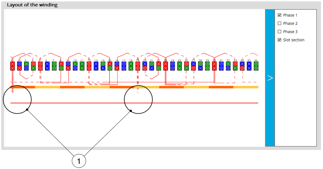 | 3 | Number of parallel paths. The possible numbers of parallel paths are automatically computed and proposed to the user. When the user chooses a number of parallel paths, the connections on the winding scheme are automatically updated. See examples in Auto mode chapter. Note: The complete list of the possible numbers of