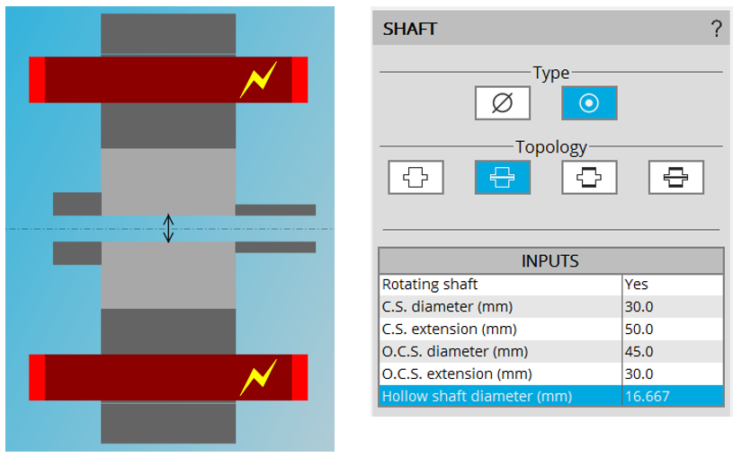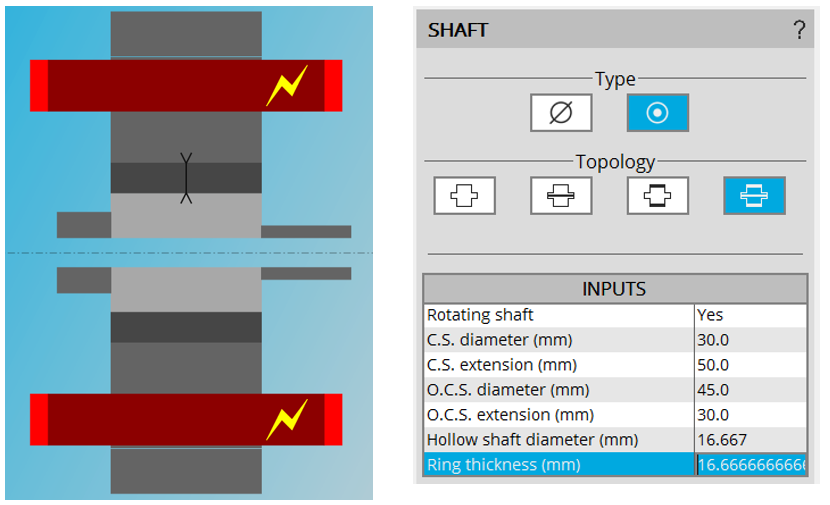 | Shaft topology 1: Solid | Shaft topology 2: Solid with hollow |