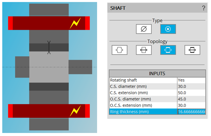 | Shaft topology 3: Solid with ring | Shaft topology 4: Solid with hollow and ring |