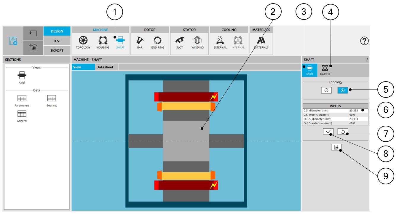 | 2 | Visualization of the motor axial view to visualize the shaft topology and dimensions. |