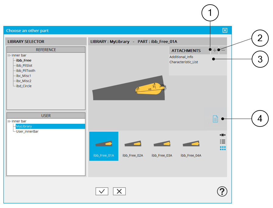4 Button to visualize the list of documents attached to the part. See additional information below.