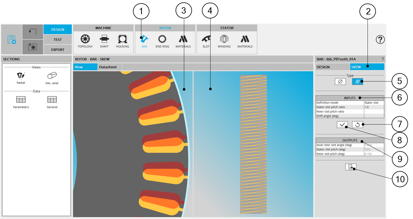 | 4 | Visualization of the rotor developed view to visualize the bar skew |