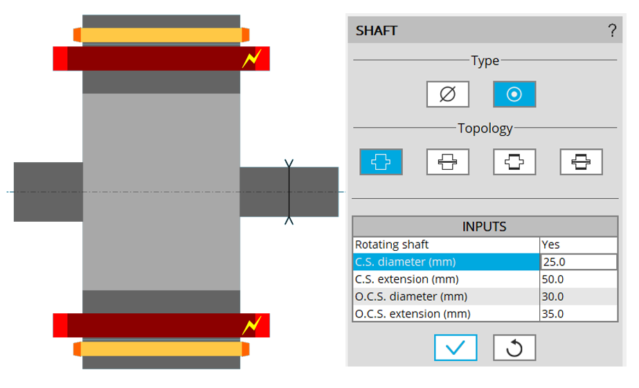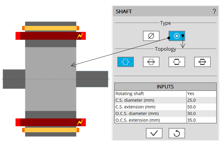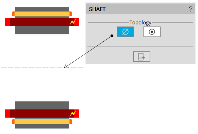 Type = Solid: 4 different topologies of shaft can be considered in the rotor design. It is built with a solid material or laminations. The four topologies are described below.