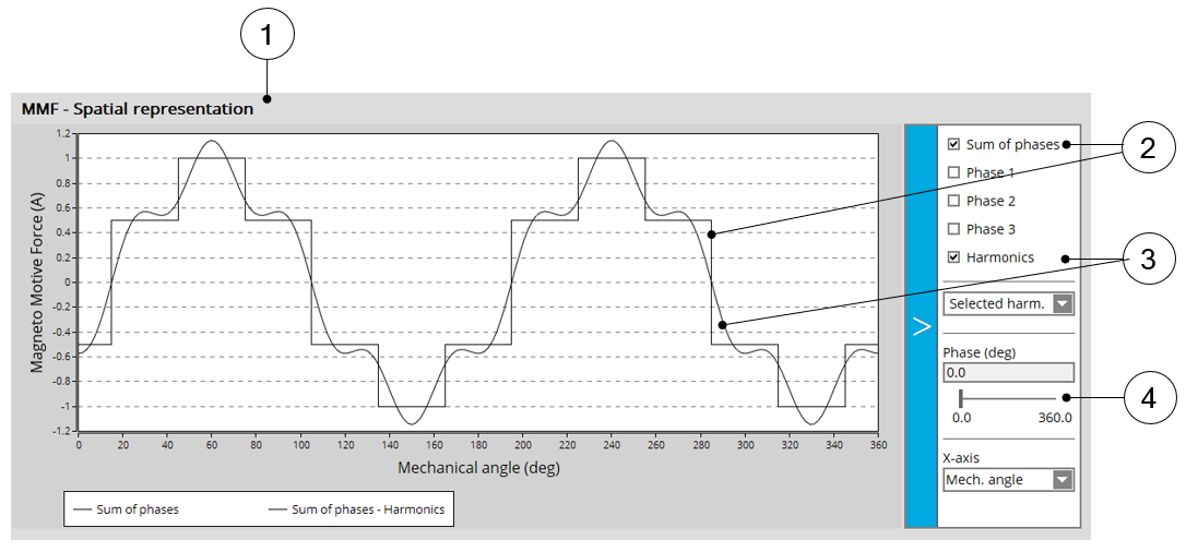 | 2 | Check the curves to display. Sum of phases M.M.F or M.M.F. provided by