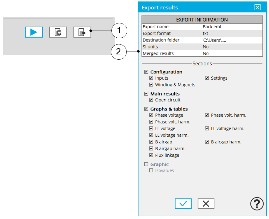 | 2 | Dialog box to export test results. See the next chapter for details about the fields in this dialog box. |