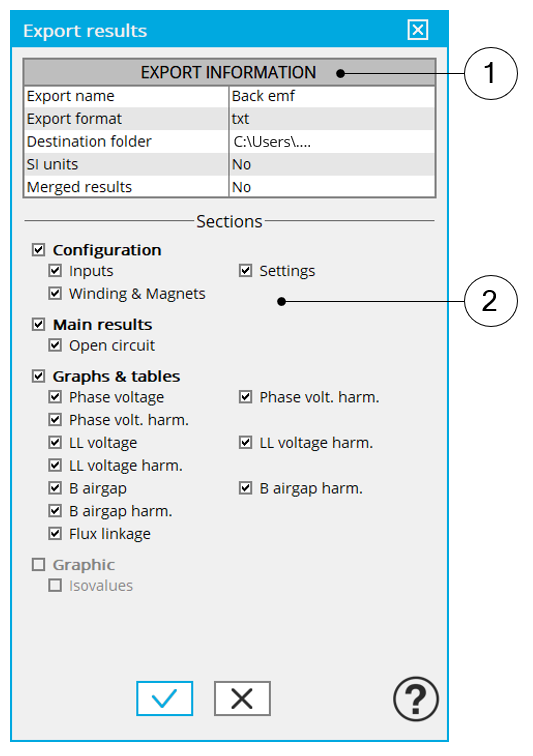 The process of exporting results into a text file is managed inside the following dedicated dialog box.
