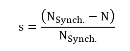 The slip “s” in the following relations) corresponds to the relative difference between the synchronous speed (N Synch. ) and rotor speed N: