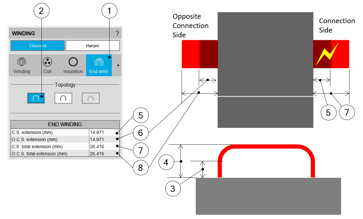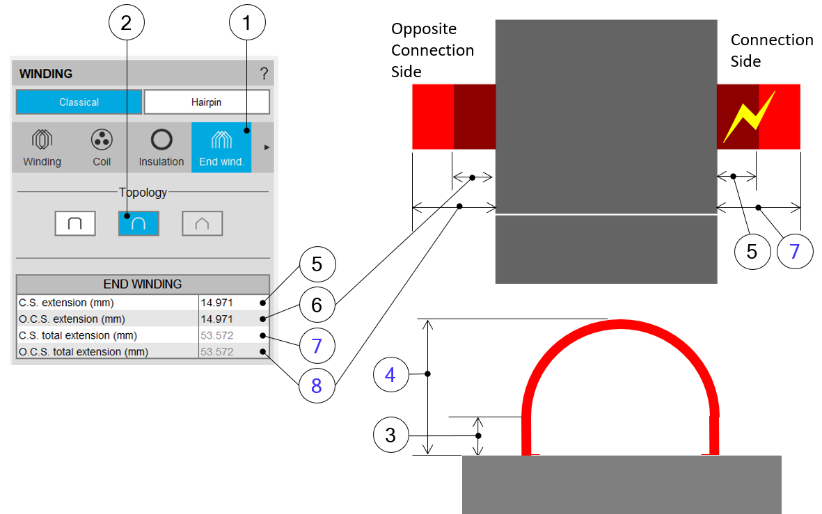 | 3 | Straight extension of the U-Shape end-winding topology = User input parameter. |