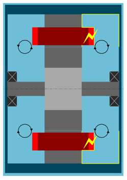 When selecting one of these four inputs, the corresponding exchange areas are highlighted in the axial view of the machine.