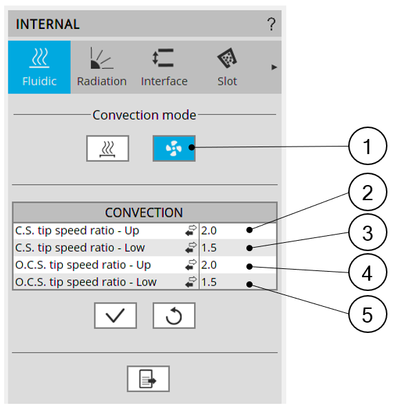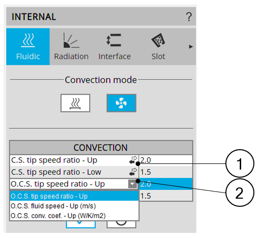 | 2 | Drop down menu allows choosing an input mode for the dedicated convection region. |