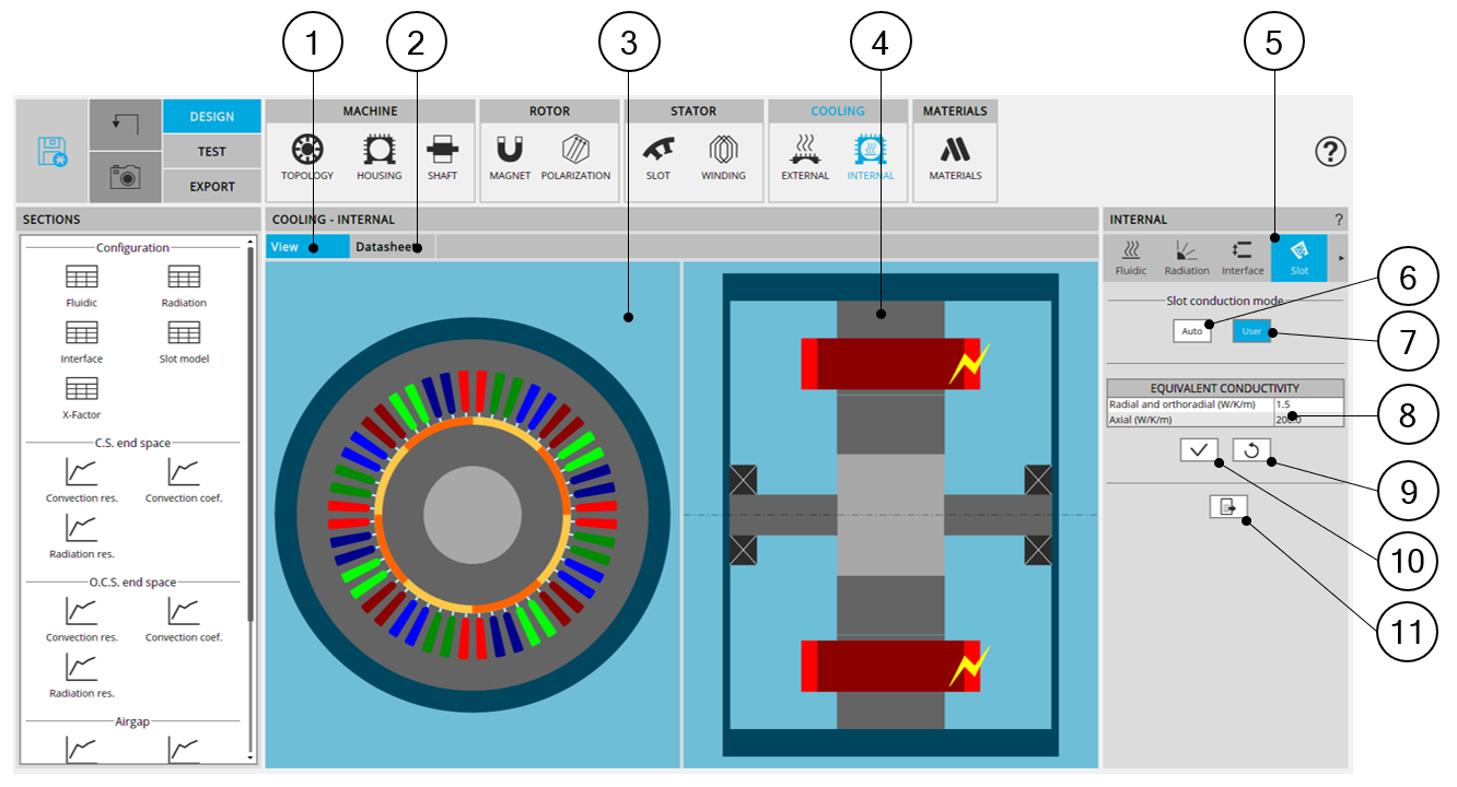 | 6 | Button to set the slot conductivities automatically by internal process. |