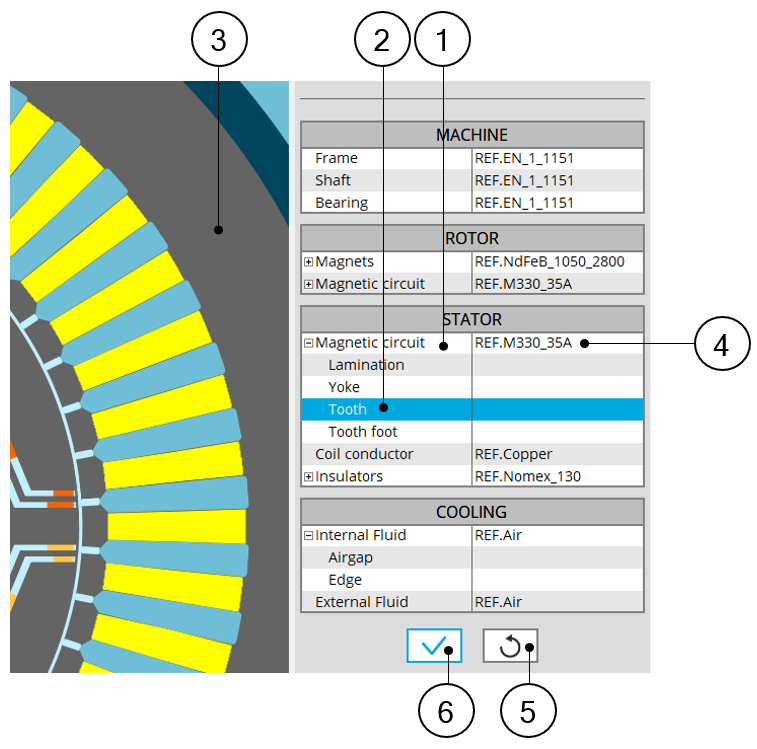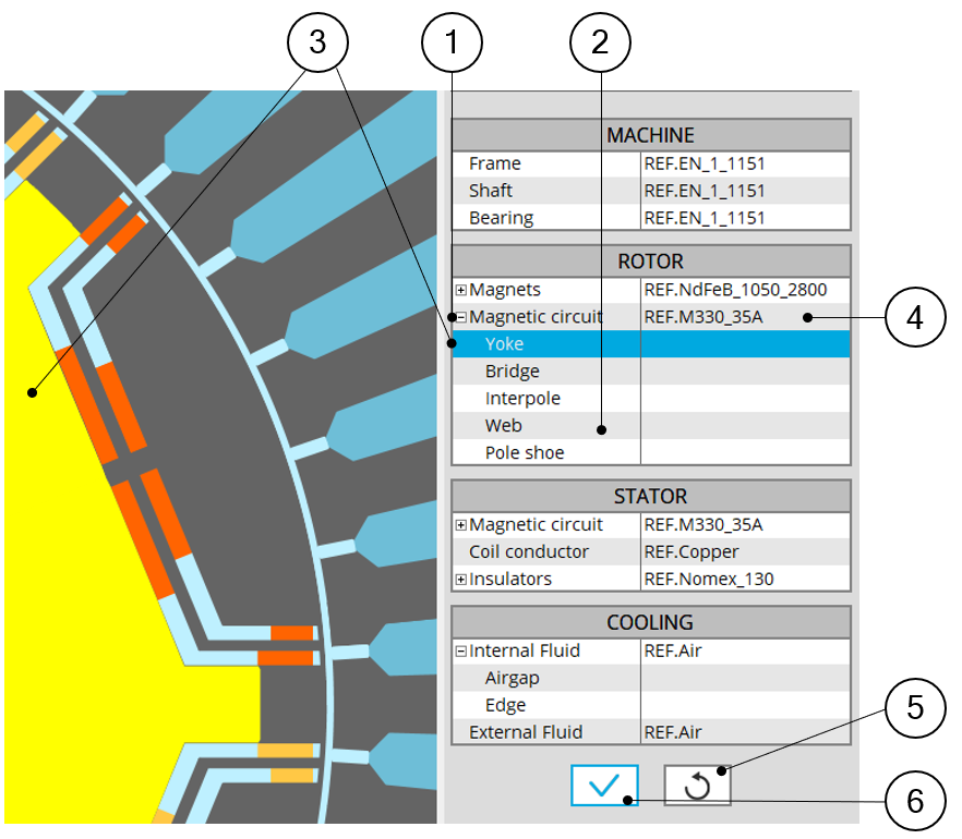 | 1 | Expand the section dedicated to the magnetic circuit.Different materials (LAMINATION type or SOLID type) can be assigned to it. |