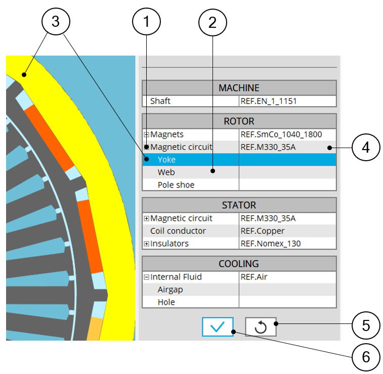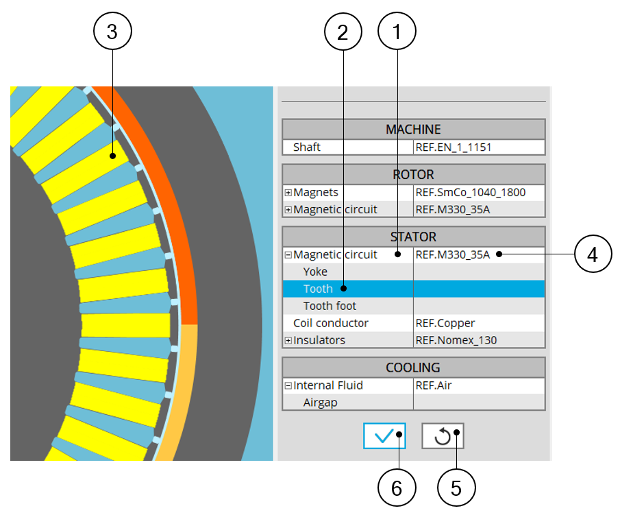 Expand the material list to choose a material to assign to the magnetic circuit.