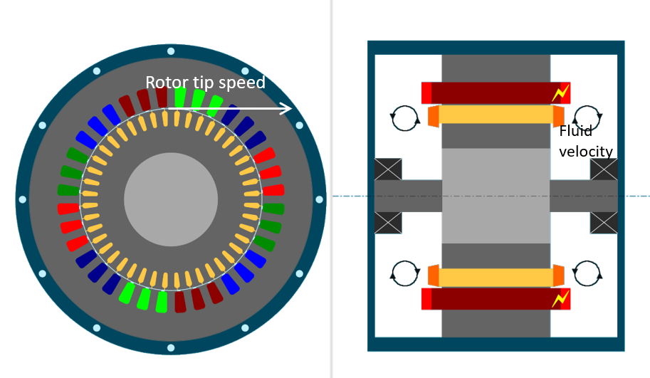 In both input modes « Tip speed ratio » and « Constant fluid speed », the fluid speed is applied to classical correlations depending on the nature of the sub region (end winding, frame, rotor part…).