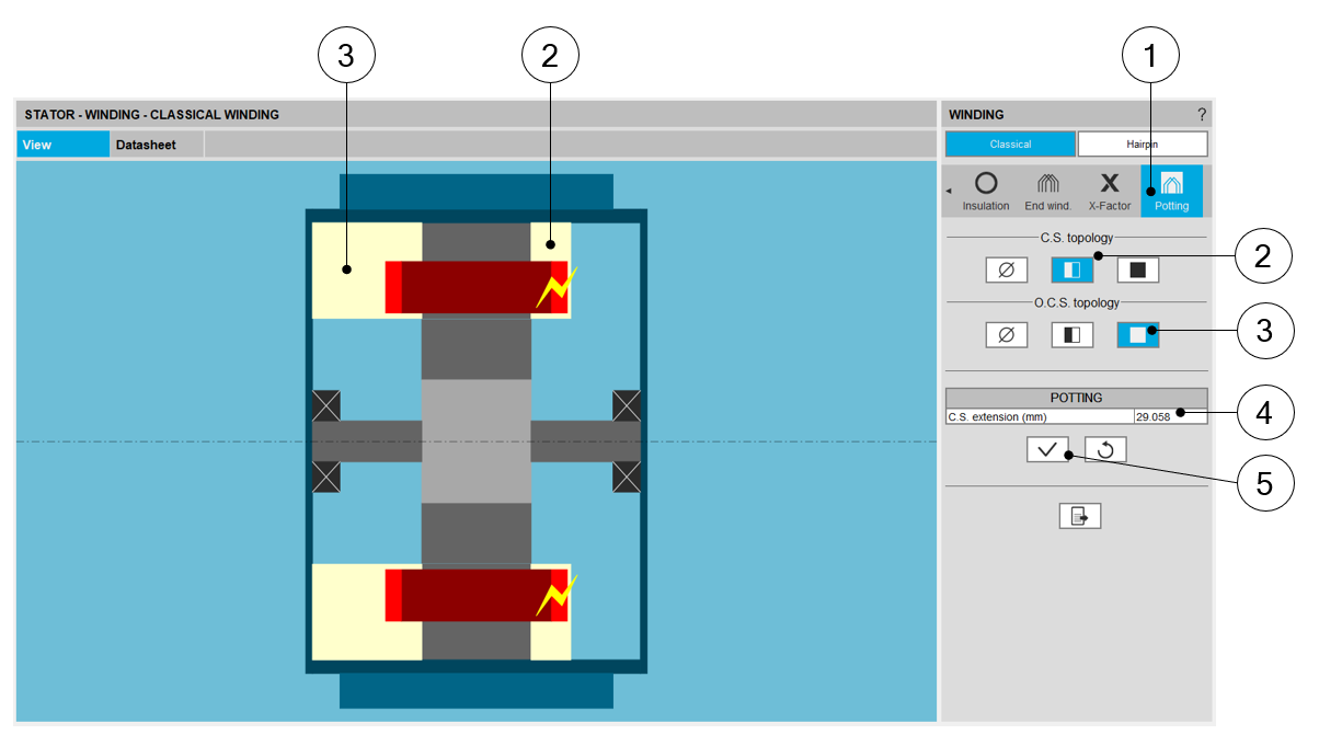 | Building the winding – Definition of the topology and dimensions of the potting around the end-winding | |