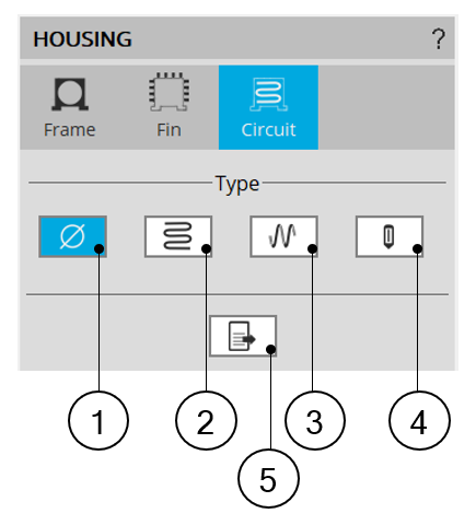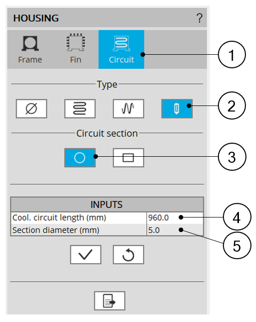 3 The section Circuit (Cooling circuit) is selected to define the type and dimensions of the cooling circuit.