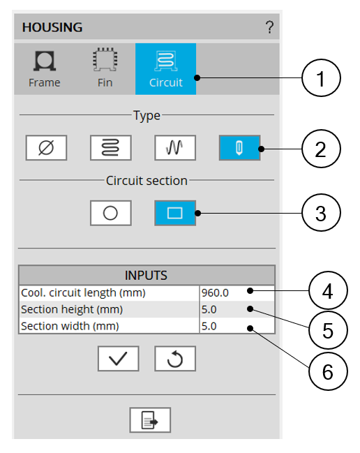 6 User input parameters to define the cooling circuit characteristics. For more information see below.