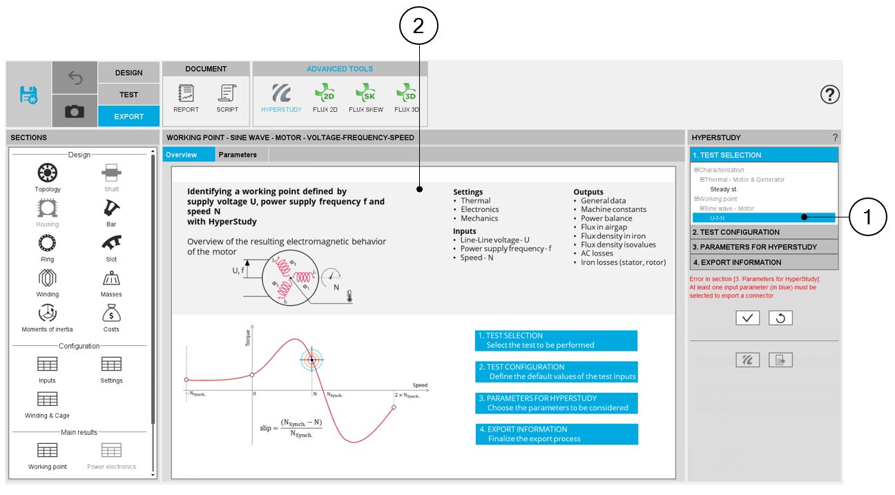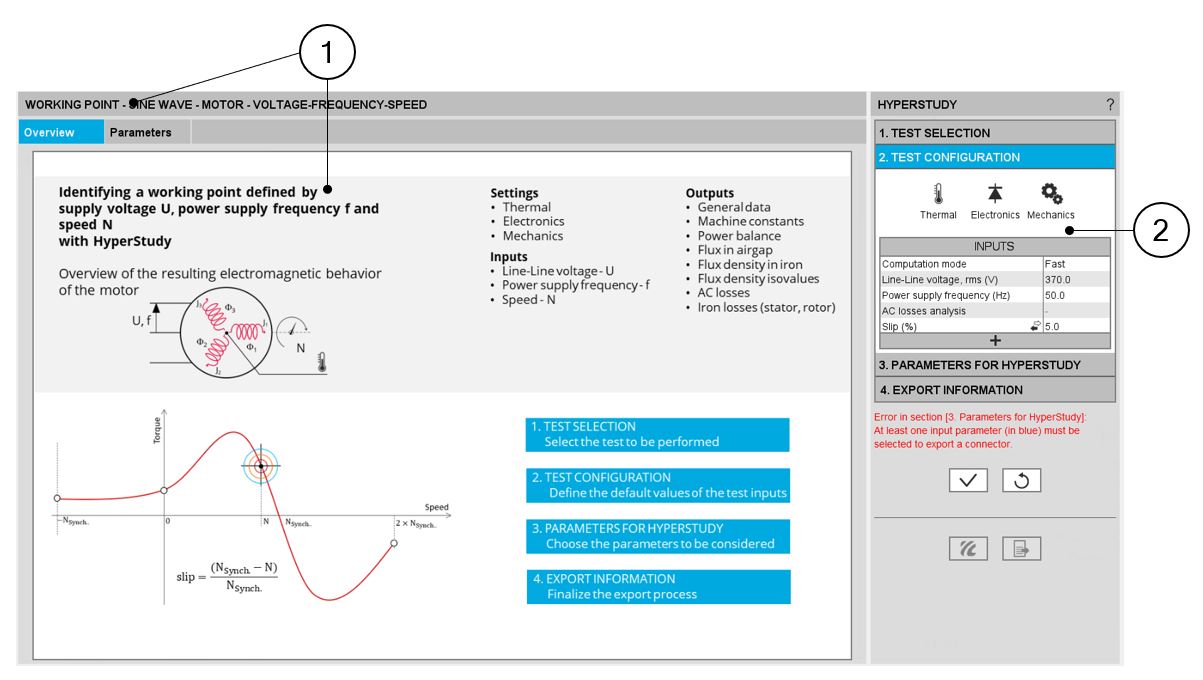 | 1 | Selection of a test to be performed by HyperStudy® |