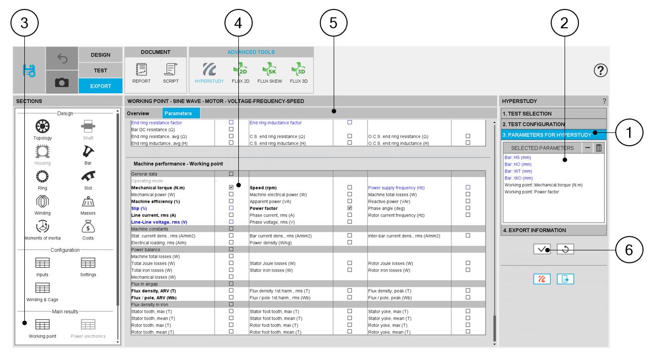 When one clicks on this button (4a), HyperStudy is automatically opened, with the connector built by FluxMotor uploaded.