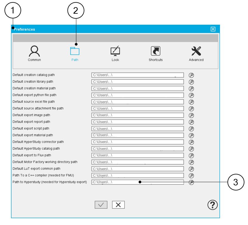| Path to HyperStudy – Needed for HyperStudy export – It must be defined in the user preferences (Supervisor of FluxMotor) |