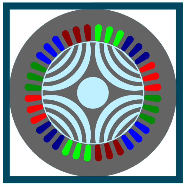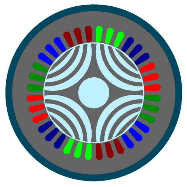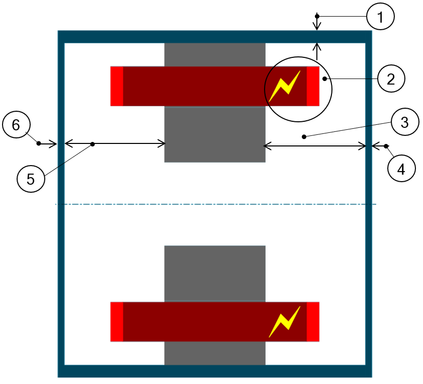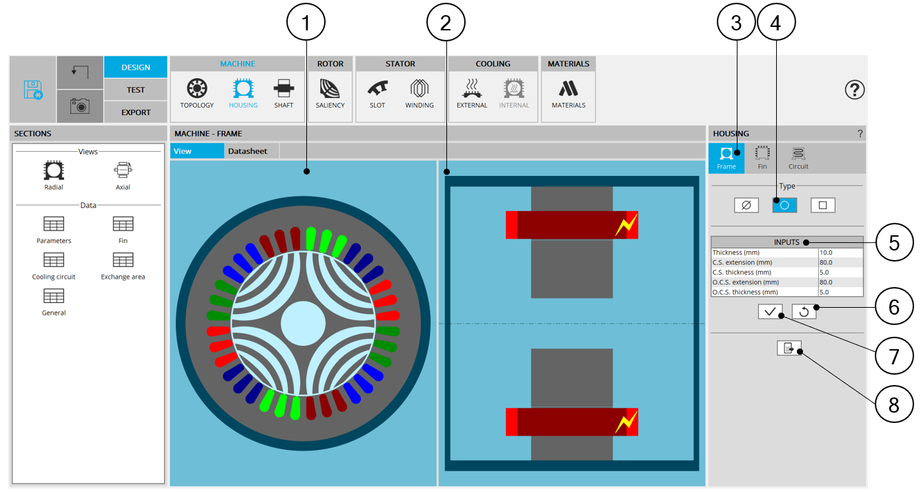 | 1 | Radial view of the motor, including the housing topology and dimensions. |
