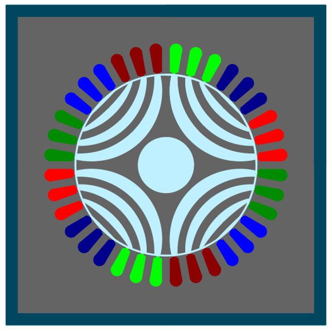 | 2 | Axial view of the motor, including the housing topology and dimensions. |