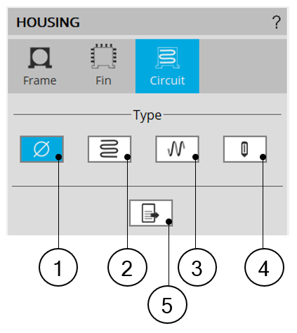 1 | Default setting : Cooling circuit type is « None » Theres is no cooling circuit inside the housing. |