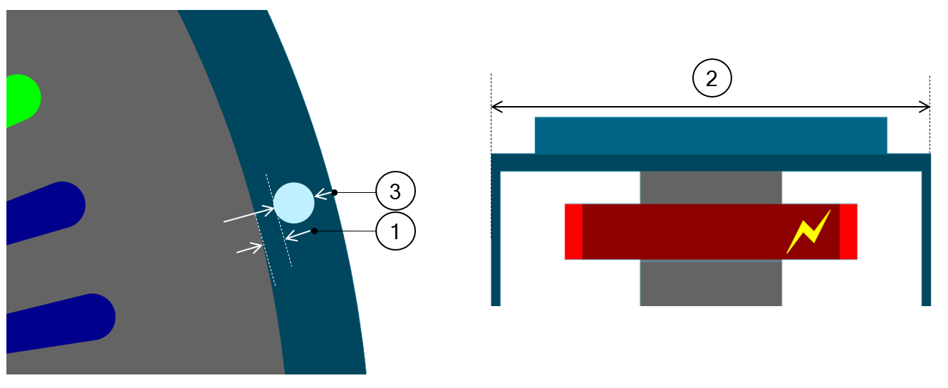 | 1 | Radial view of the motor, including the housing topology with cooling circuit topology and dimensions. |