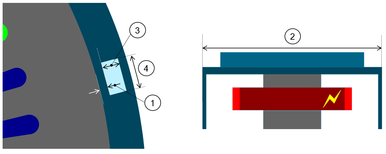 | 2 | Axial view of the motor, including the housing topology with cooling circuit topology and dimensions. |