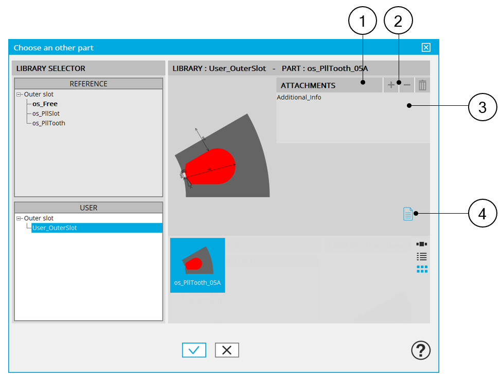 2 Visualization of user libraries. The default user library is “User_OuterSlot”See “Part Library” application for more information.