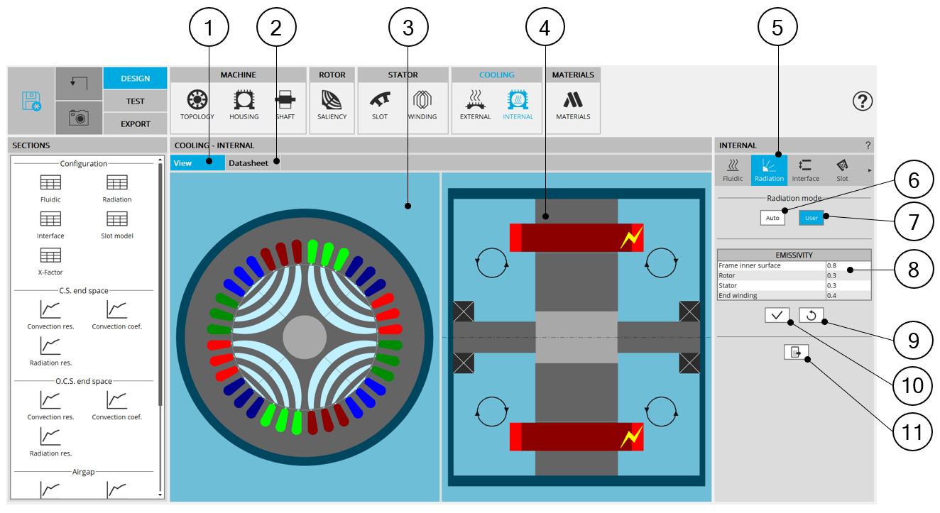 3 Radial view of the motor, where specific exchange areas can be highlighted depending on the selected input.