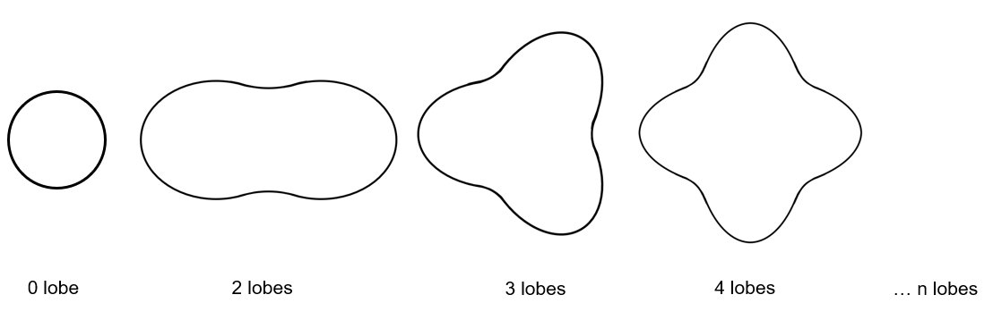 The “ max. mode / spatial order ” ( Maximum mode / spatial order ) input allows the user to define the number of modes to be considered for the acoustic structural analysis. If the user selects 25, it means that the highest number of lobes in the stator deformation will be equal to 25 lobes. All deformations corresponding to more than 25 lobes will be dismissed.