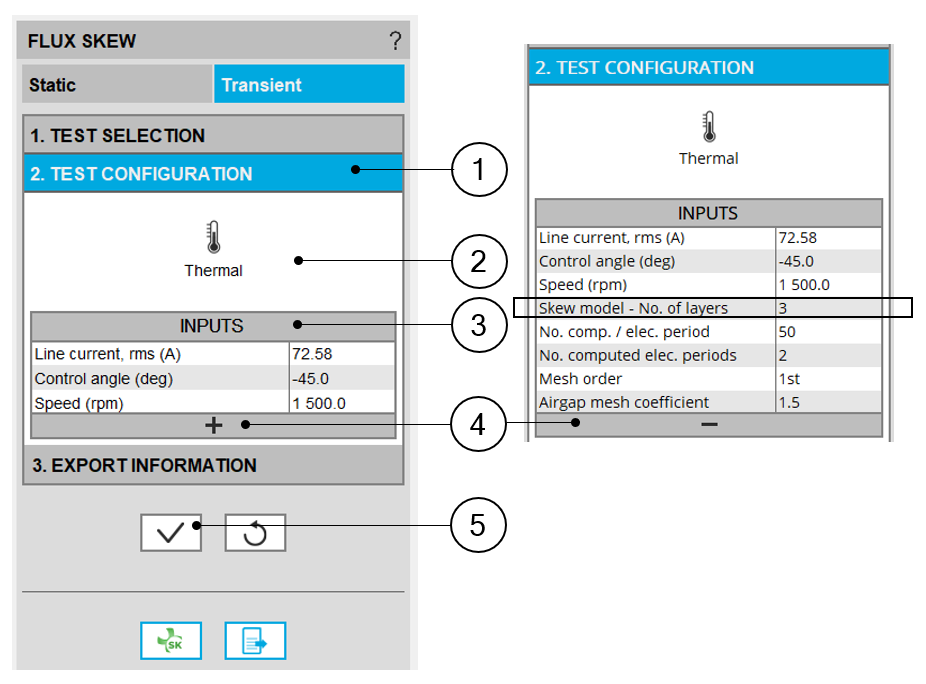 | 6 | Button to validate inputs and export the python file for building the model in Flux® Skew environment. |