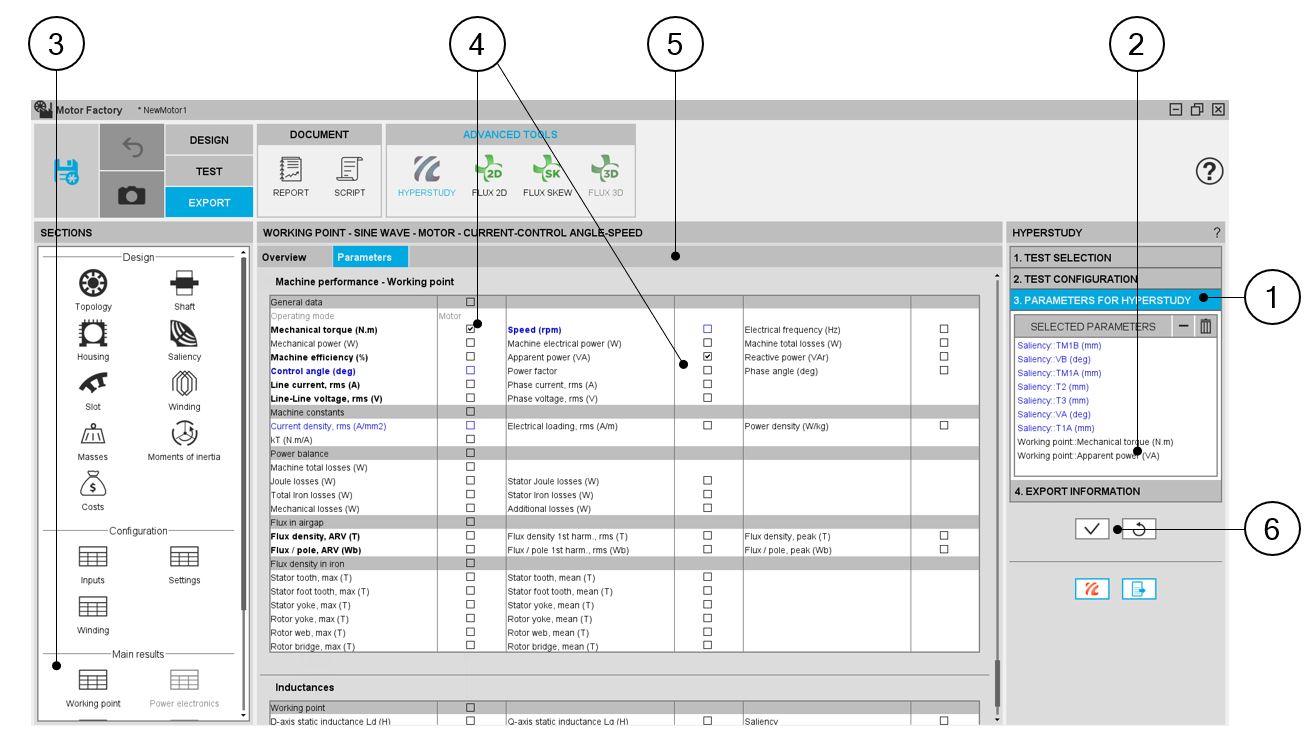 In the current version of FluxMotor, 7 tests can be selected for Reluctance Synchronous Machines: