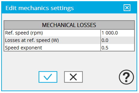 | User inputs for defining the mechanical losses |