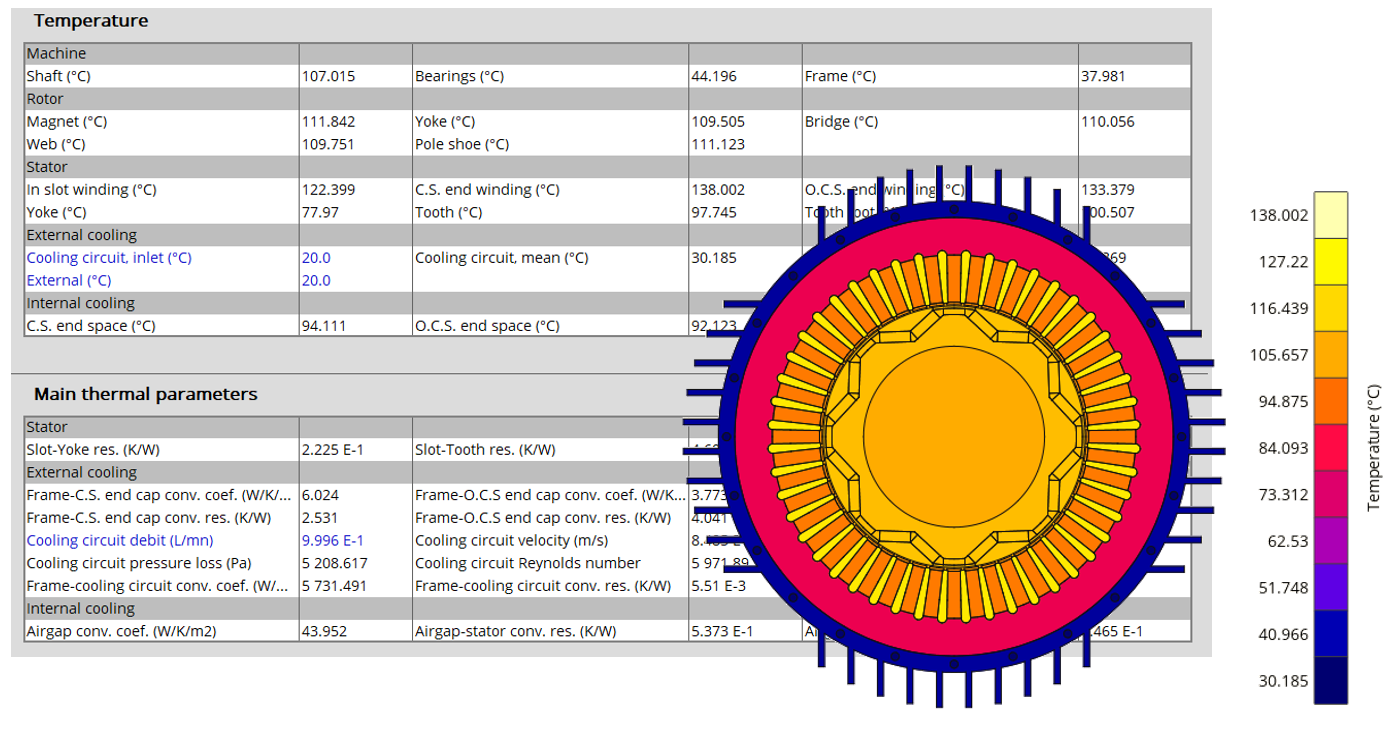 A thermal working point defined by a speed and a set of losses can be considered to compute the temperature charts and the main thermal parameters. The inputs describing the thermal working point can be set manually or imported from electromagnetic tests that were previously solved.