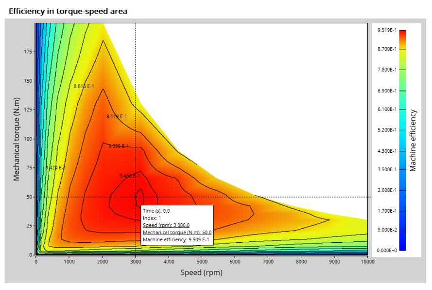 The first one allows extracting one torque-speed point from the efficiency map to get the machine performance, for this specific working point (general data + power balance).