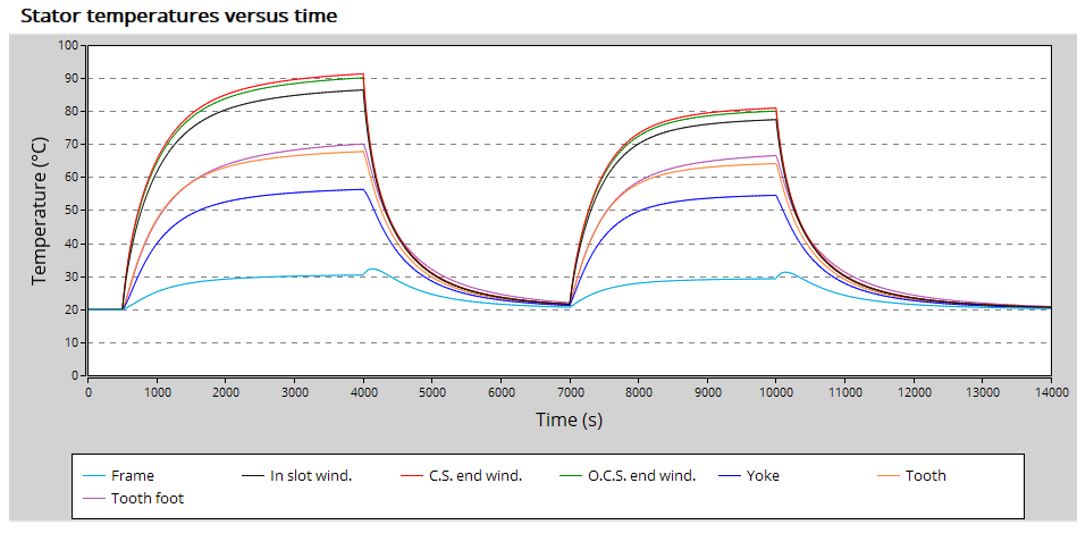 When the "thermal solving" is selected in the settings, the machine temperatures are computed over the driving cycle.